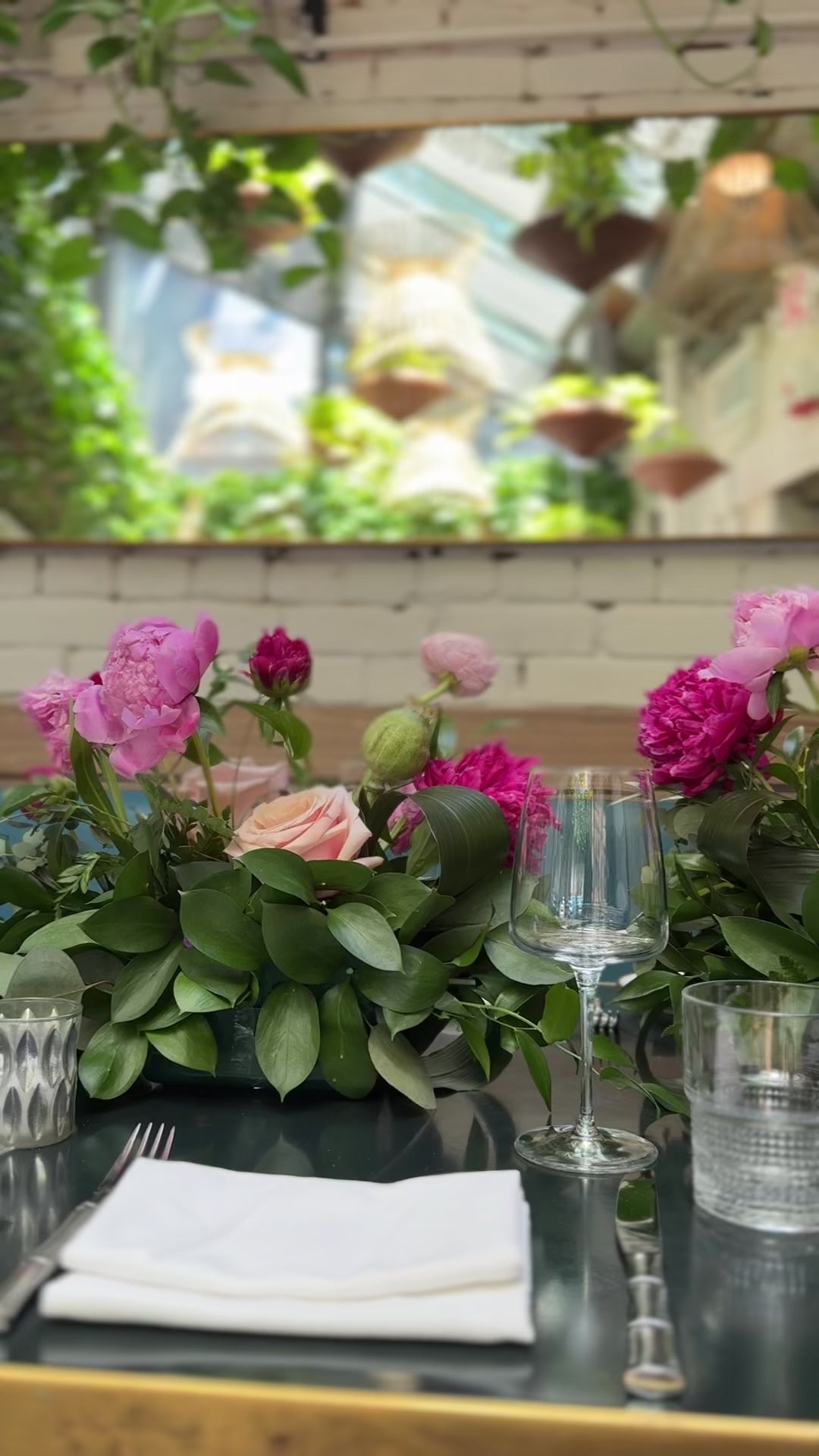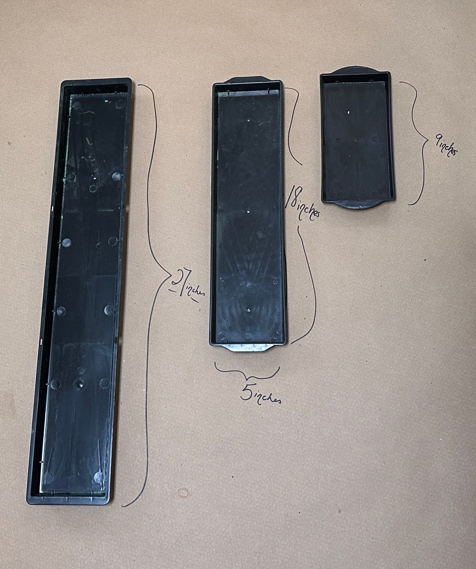 9 inch floral tray - with flowers can be elongated 1-6 inches from each side resulting in around 11-21 inches in total. Basic varietal greens and white floral accents at $100, Deluxe $140 each (includes focal florals such as orchids, roses, and dahlias/peonies (season dependent).